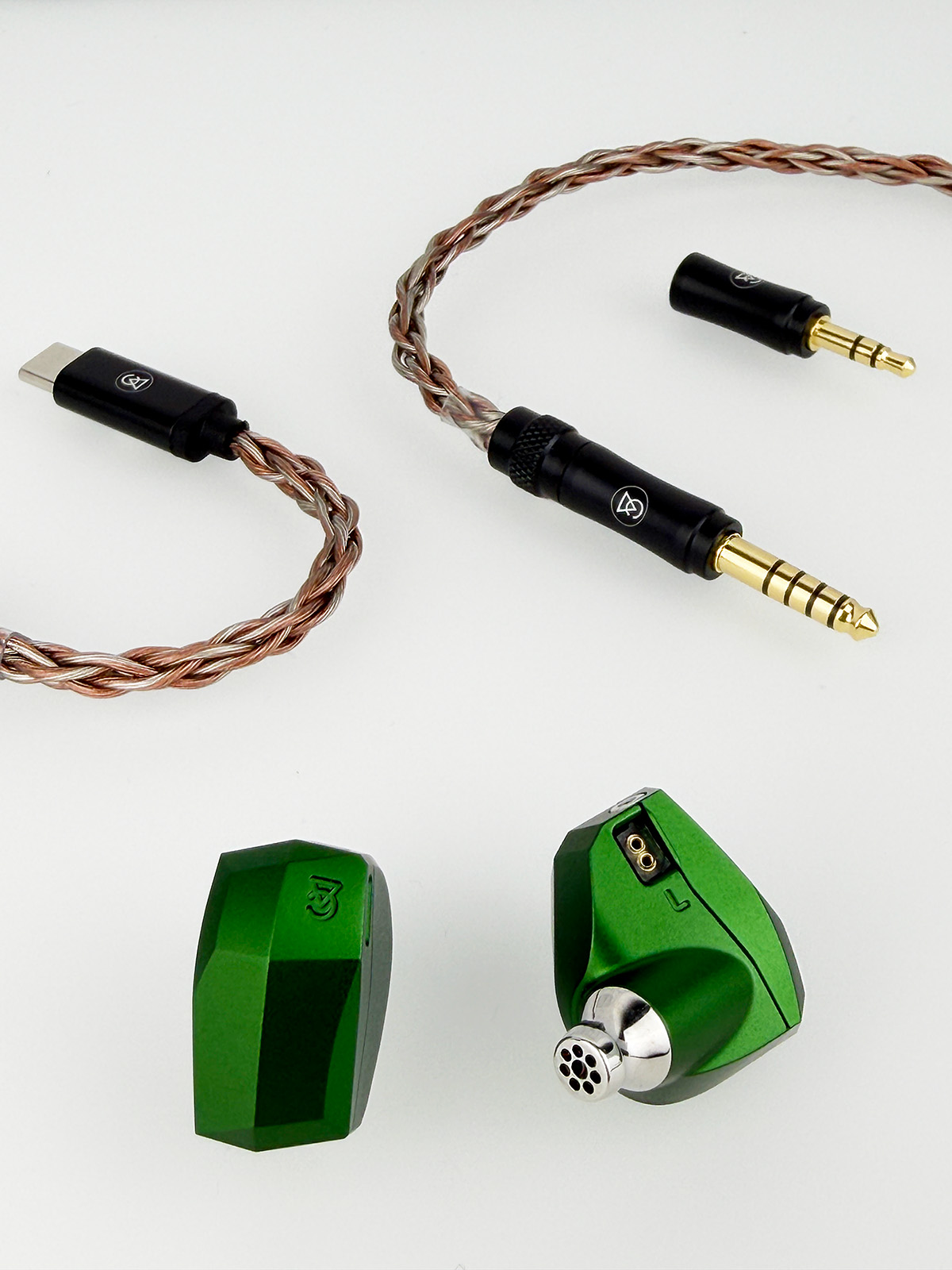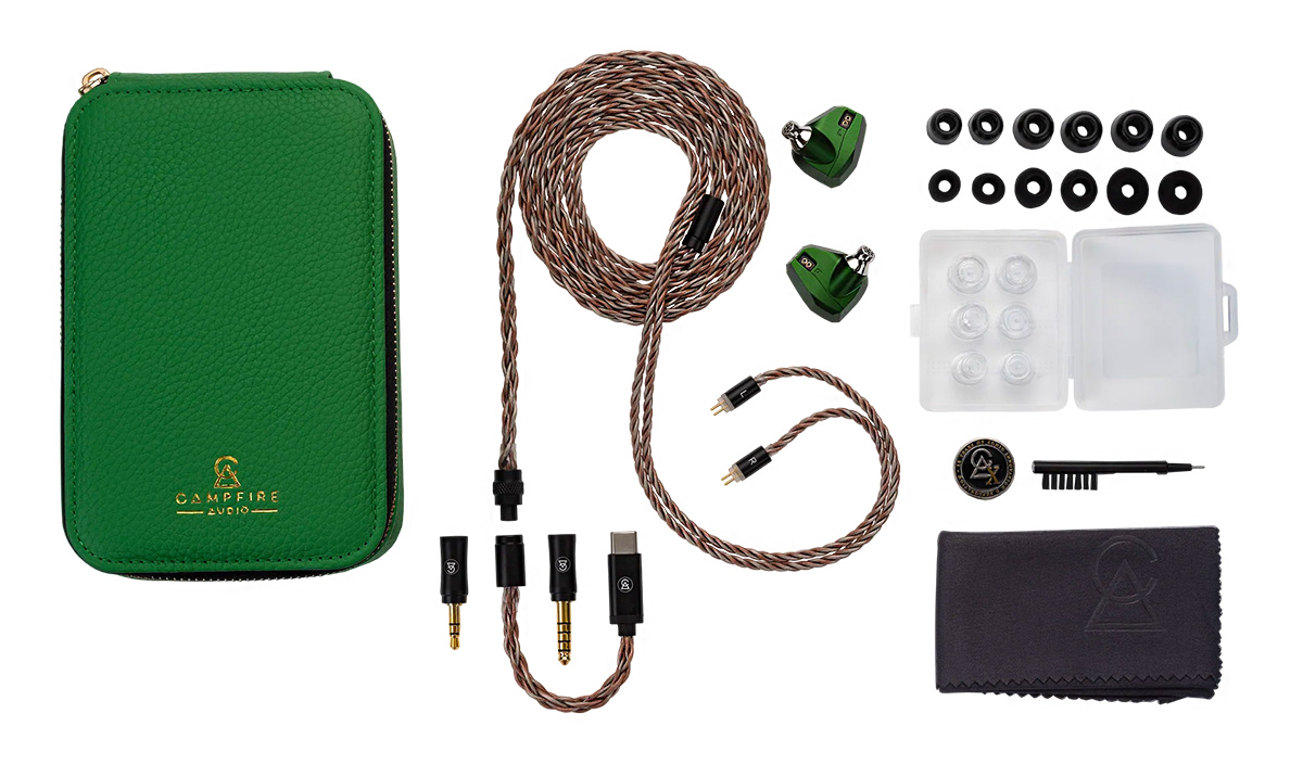 The Andromeda 10 is shipped with the same high-end cable that debuted alongside the Grand Luna. It features Campfire’s new premium swappable cable system. You get interchangeable terminations for 3.5 mm single-ended, 4.4 mm balanced and a USB-C DAC. The key difference here is that the Andromeda 10 uses a 2-pin connector instead of a MMCX.