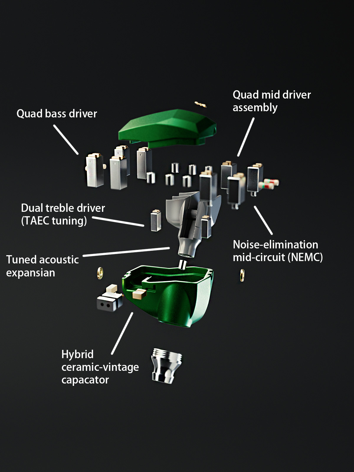 For the Andromeda 10 anniversary edition, Campfire Audio used a newly designed mid-driver assembly. This debuts a new mid-driver noise-elimination circuit (NEMC). It reduces unwanted noise and resonance that can occur with balanced armature drivers. The result is a cleaner and more transparent midrange with a stronger detail.