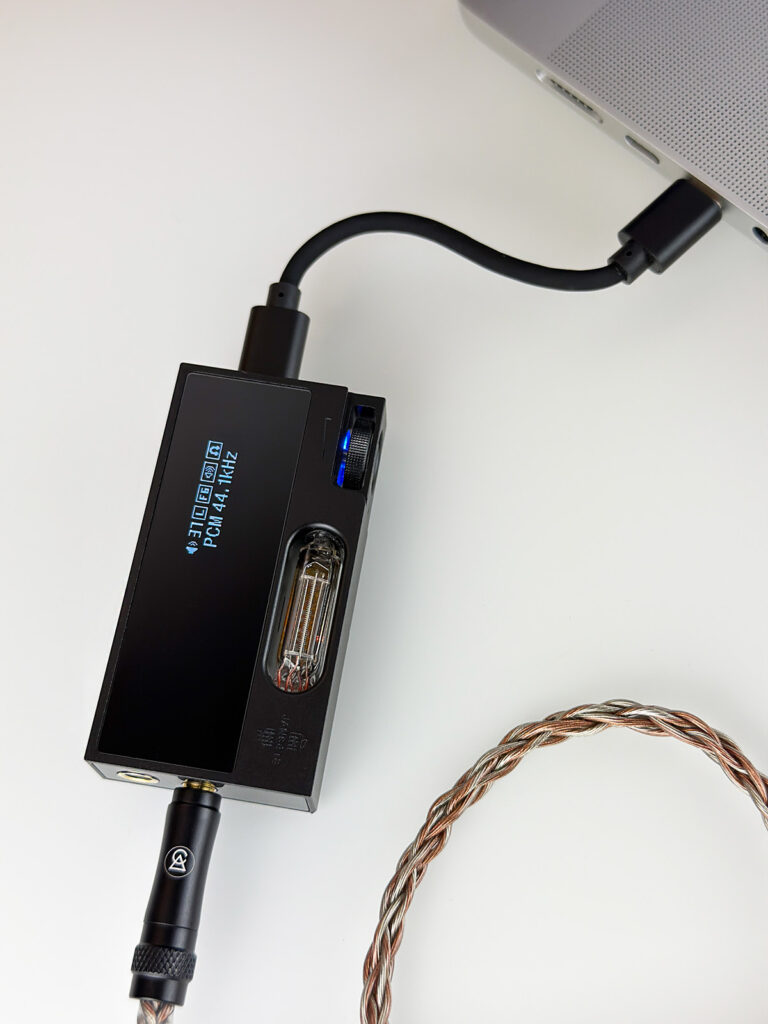 In tube mode, the low end has weight and note density, resulting in a full but controlled bass presentation. Bass notes stay well defined, with a long decay and rounder note shaping. This tuning works particularly well with bass-lighter earphones, improving low-end presence and timbre without introducing bloom or loss of control.