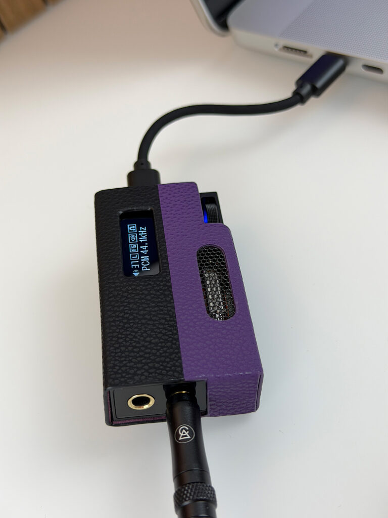 Control is handled by a volume wheel that also functions as a multifunction button. Menu navigation is intuitive and reliable. A small status LED provides instant feedback on the active signal format, with different colors indicating PCM(Blue), DSD(Green) or UAC 1.0(Red) operation.